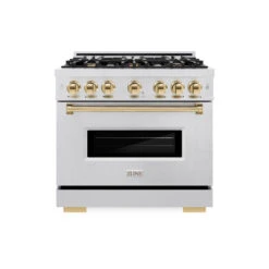ZLINE Autograph Edition 36 In. 5.2 Cu. Ft. Classic Gas Range With 6 Burner Cooktop And Convection Gas Oven In Satin Stainless Steel And Polished Gold Accents (CGRSZ-36-G)(Zline Autograph Edition 36 Classic Gas Range Satin Stainless Steel Polished Gold Cgrsz 36 G)