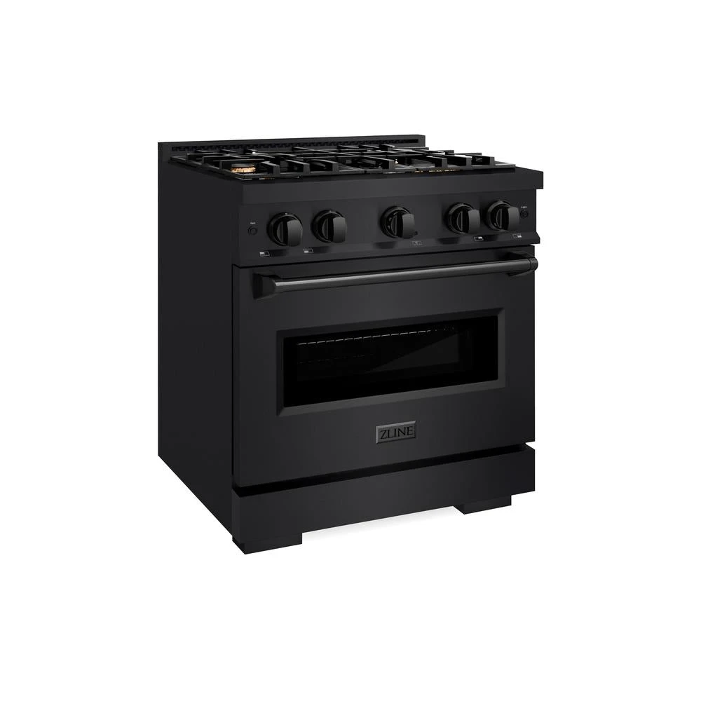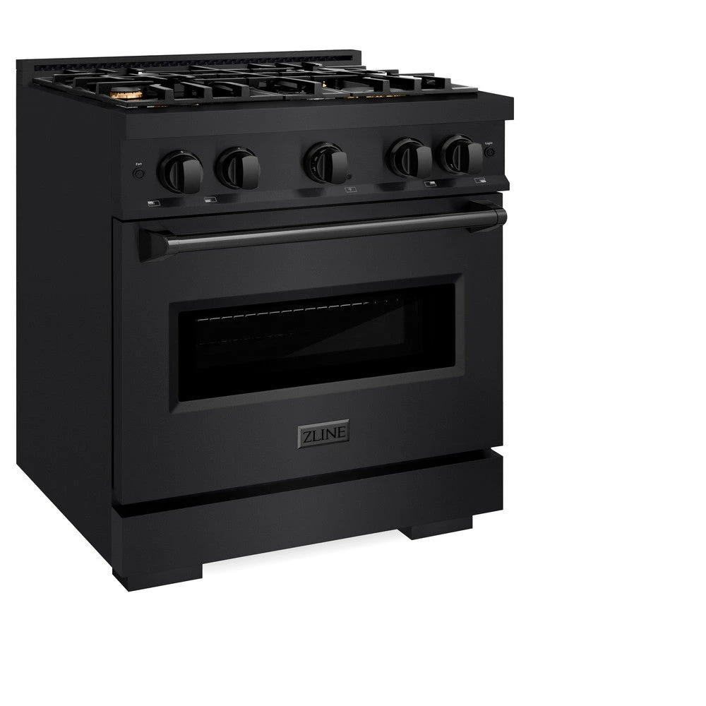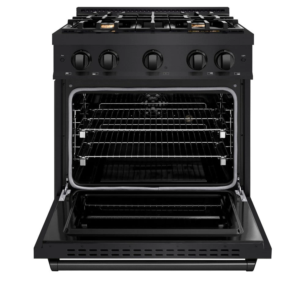 ZLINE 30 In. 4.2 Cu. Ft. Classic Dual Fuel Range With Gas Cooktop And Electric Convection Oven In Black Stainless Steel With 4 Brass Burners (CDRB-BR-30)(Zline 30 Classic Dual Fuel Range Black Stainless Steel Brass Burners Cdrb Br 30)