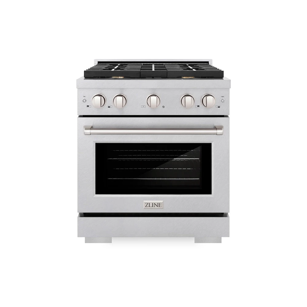 Luxury isn’t meant to be left desired—it’s meant to be attainable. The ZLINE 30 in. 4.2 cu. ft. Paramount Gas Range with Convection Gas Oven in Satin Stainless Steel with 4 Brass Burners (SGRS-BR-30) features a versatile gas cooktop with 4 Italian-made sealed brass burners, a high-performing gas convection oven, enhanced cast iron grates, and a Horizon oven door window design allowing you to master every meal. With a modern, timeless style and refined functionality, ZLINE Paramount Gas Ranges are masterfully crafted to deliver an elevated culinary experience.