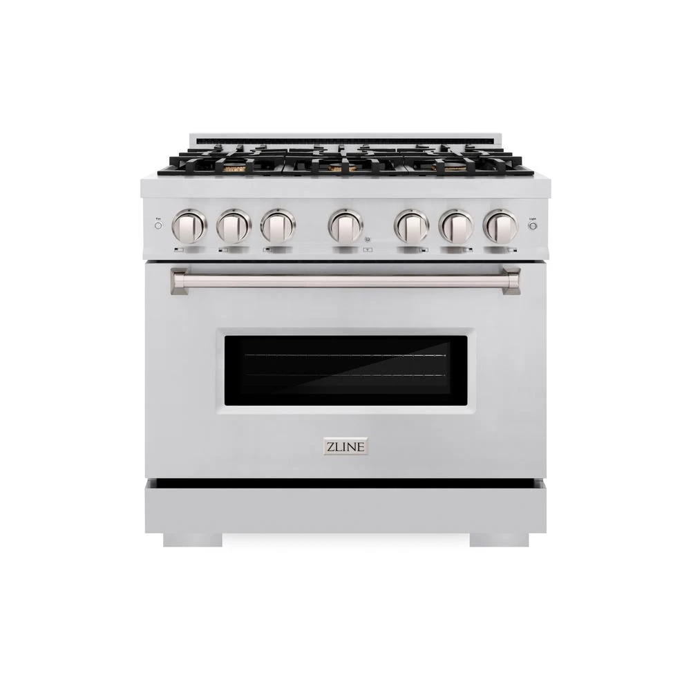 Luxury isn’t meant to be desired – it’s meant to be attainable. The ZLINE 36 in. 5.2 cu. ft. Classic Gas Range with Convection Gas Oven in Stainless Steel with 6 Brass Burners (CGR-BR-36) combines the elegance of a hand-finished porcelain gas cooktop with 6 Italian-made brass auto-reignition burners, a gas convection oven with an energy-efficient cooling fan to ensure quiet operation, and a Landscape oven door window design allowing you to master every meal. With a modern, timeless style and refined functionality, ZLINE Classic Gas Ranges are masterfully crafted to deliver an elevated culinary experience.
