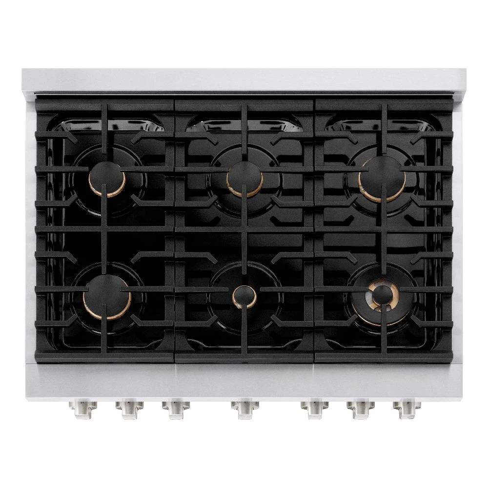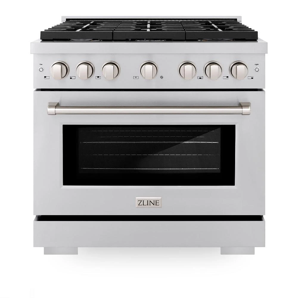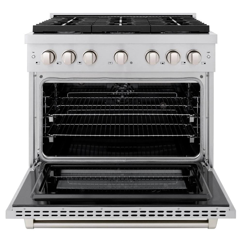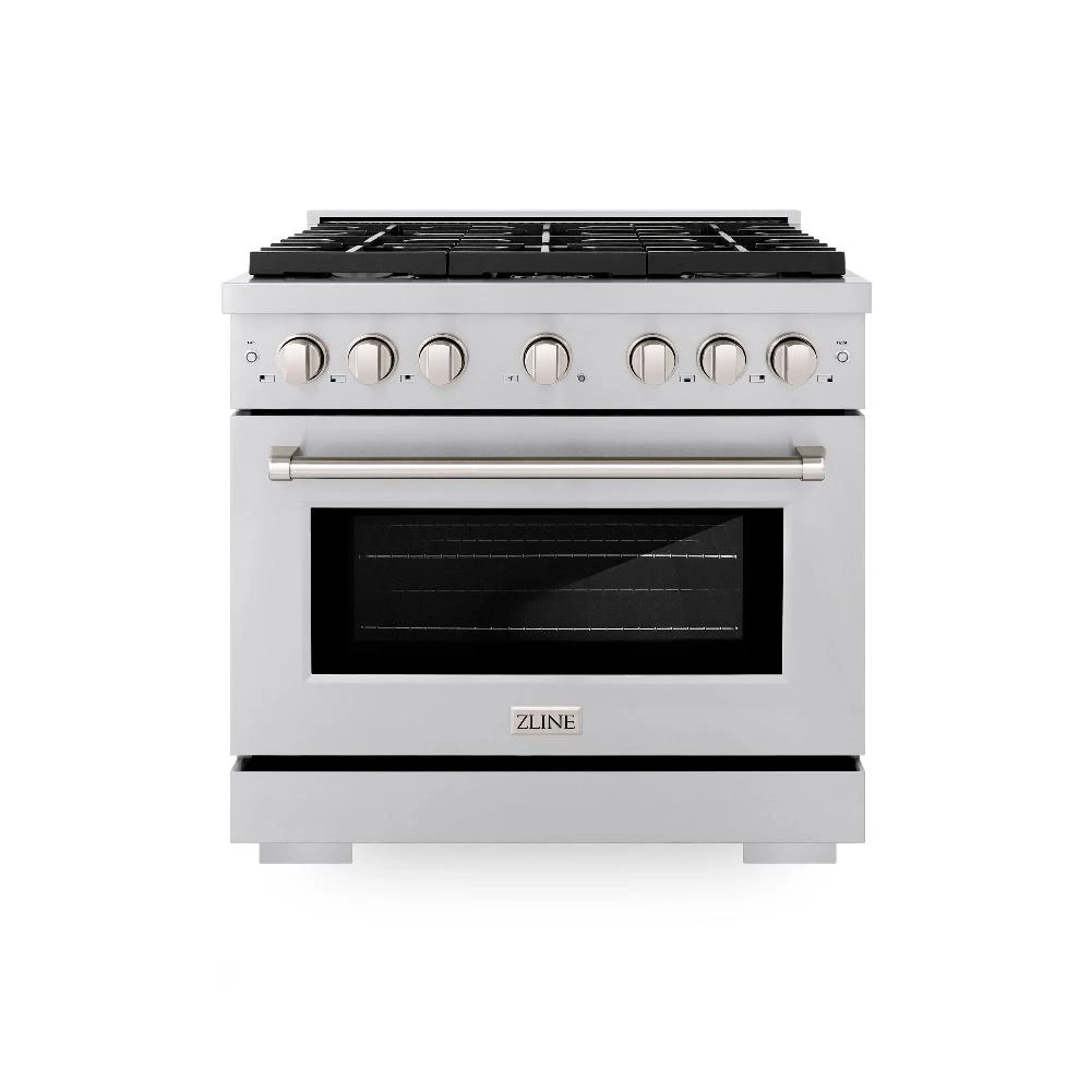 ZLINE 36 In. 5.2 Cu. Ft. Paramount Dual Fuel Range With Gas Cooktop And Electric Convection Oven In Stainless Steel With 6 Brass Burners (SDR-BR-36)(Zline 36 Paramount Dual Fuel Range Stainless Steel Brass Burners Sdr Br 36)