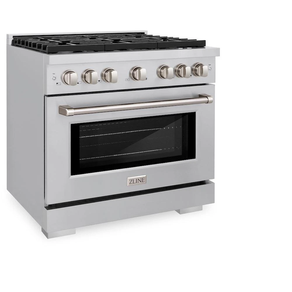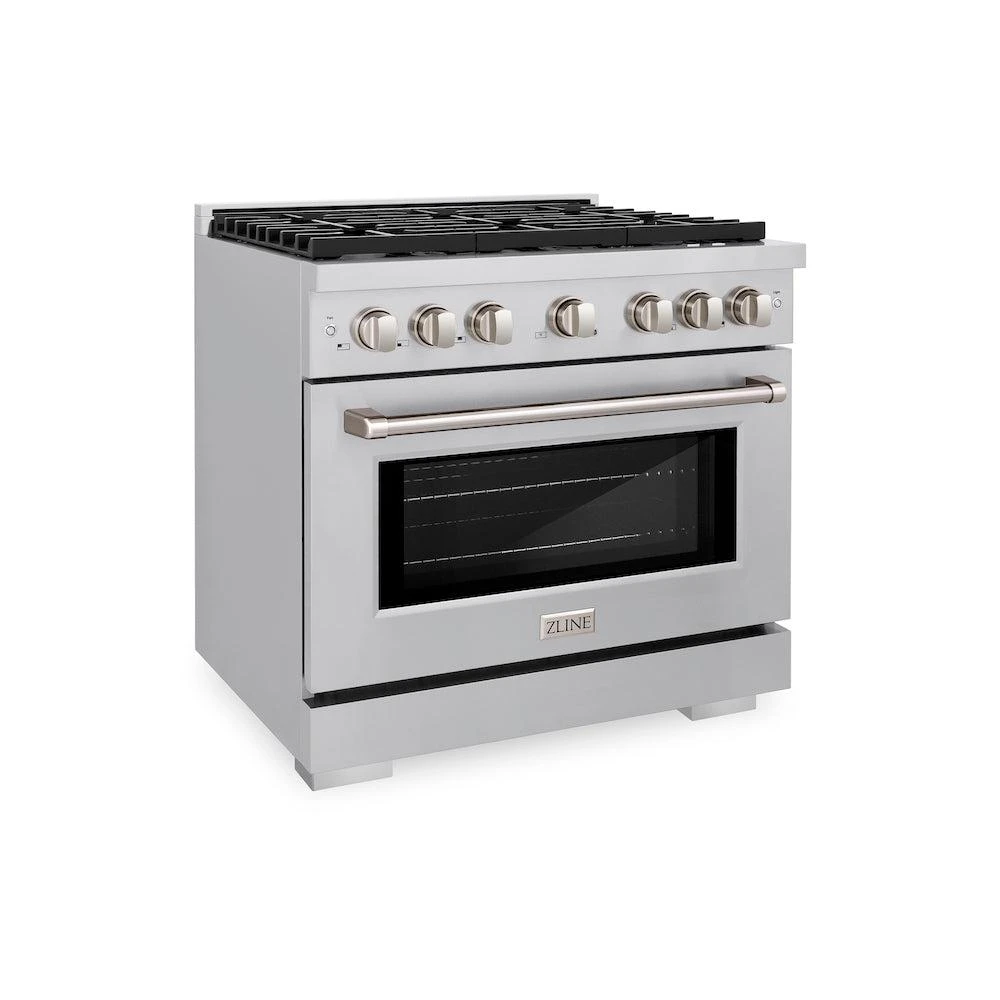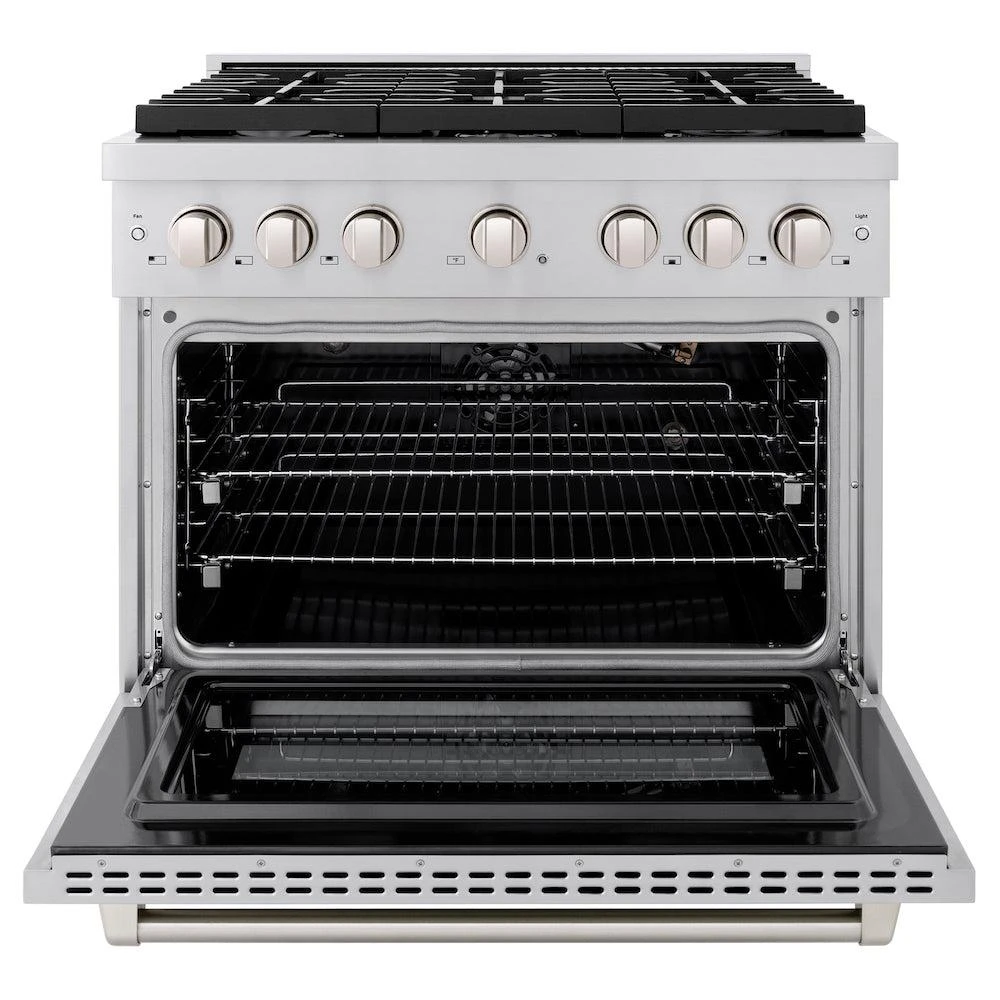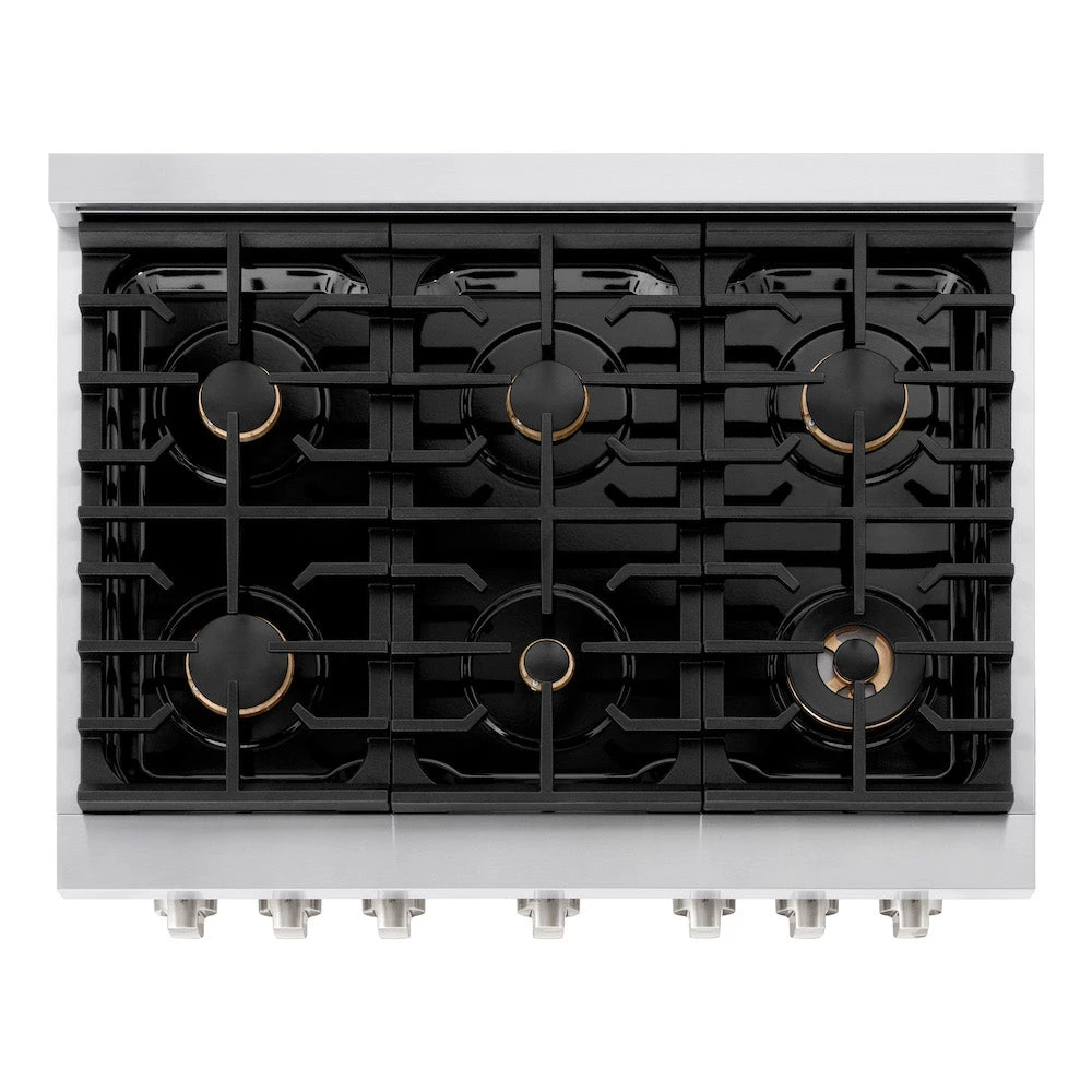 ZLINE 36 In. 5.2 Cu. Ft. Paramount Gas Range With Convection Gas Oven In Stainless Steel With 6 Brass Burners (SGR-BR-36)(Zline 36 Paramount Gas Range Stainless Steel Brass Burners Sgr Br 36)