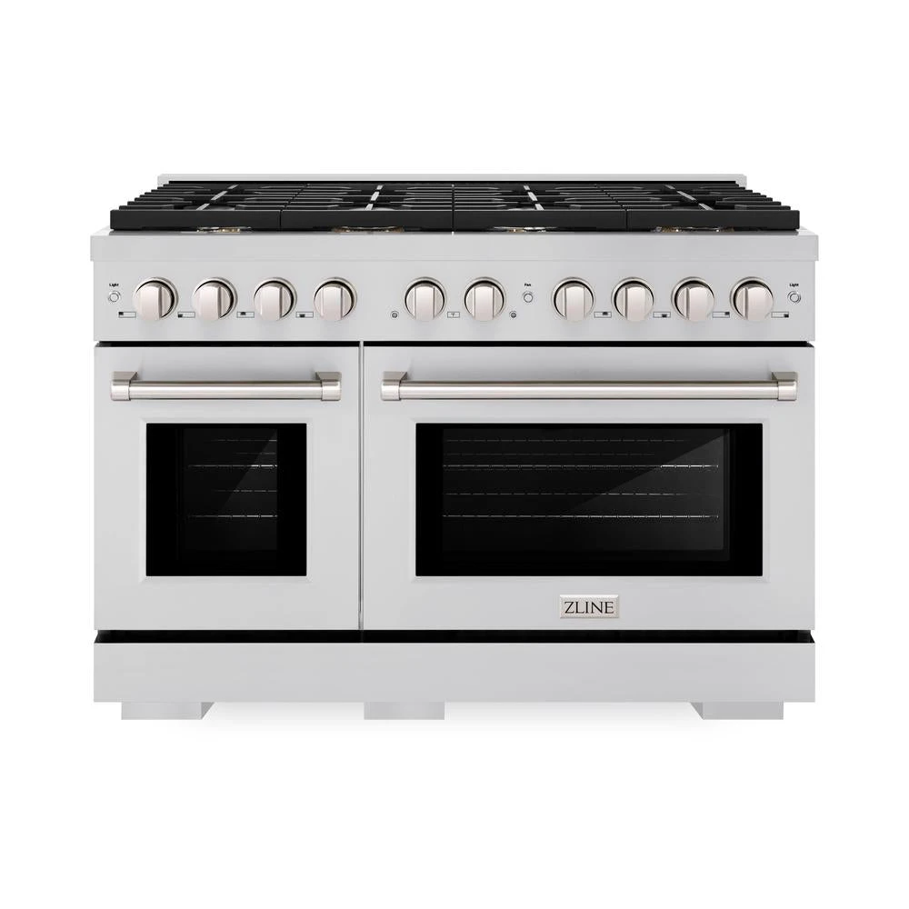 ZLINE 48 In. 6.7 Cu. Ft. Paramount Double Oven Dual Fuel Range In Stainless Steel With 8 Brass Burners (SDR-BR-48)(Zline 48 Paramount Dual Fuel Range Stainless Steel Brass Burners Sdr Br 48)