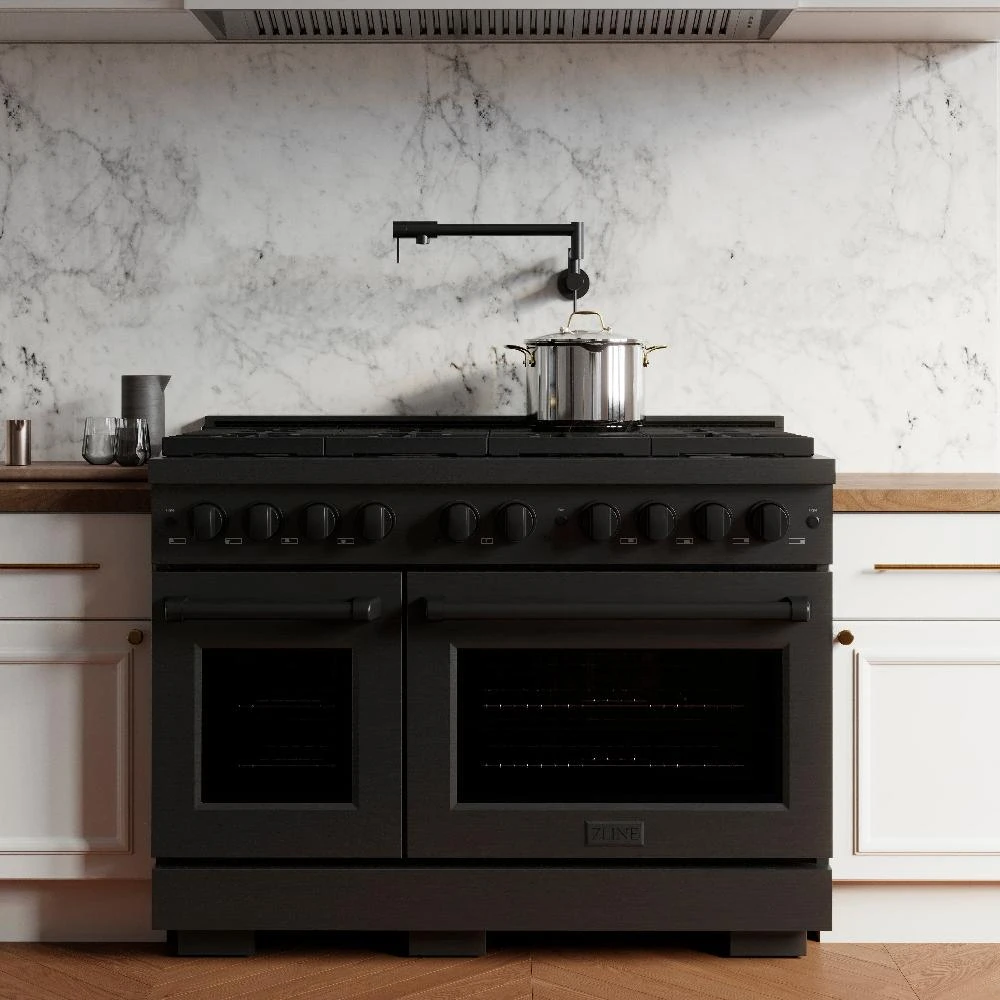 Luxury isn’t meant to be desired – it’s meant to be attainable. The ZLINE 48 in. 6.7 cu. ft. Paramount Double Oven Dual Fuel Range with 8 Burner Gas Cooktop in Black Stainless Steel (SDRB-48) combines the versatility of a gas cooktop with 8 Italian-made auto-reignition burners, a large high-performing electric convection oven and a small bake-and-broil oven with digital thermostat technology, enhanced cast iron grates, and Horizon oven door window designs allowing you to master every meal. With a modern, timeless style and refined functionality, ZLINE Paramount Dual Fuel Ranges are masterfully crafted to deliver an elevated culinary experience.