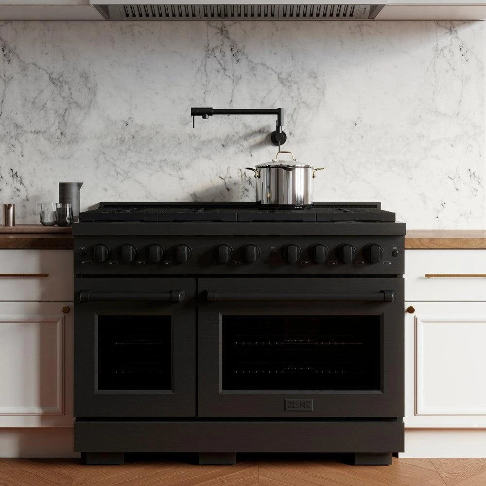 Luxury isnāt meant to be desired – itās meant to be attainable. The ZLINE 48 in. 6.7 cu. ft. Paramount Double Oven Gas Range with 8 Burner Cooktop in Black Stainless Steel (SGRB-48) features a versatile gas cooktop with 8 Italian-made auto-reignition burners, a large high-performing gas convection oven, a small baking oven, enhanced cast iron grates, and Horizon oven door window designs allowing you to master every meal. With a modern, timeless style and refined functionality, ZLINE Paramount Gas Ranges are masterfully crafted to deliver an elevated culinary experience.