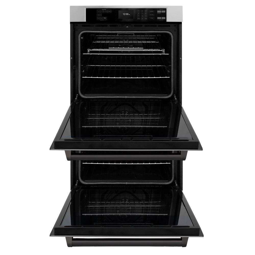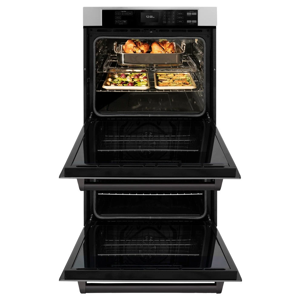 ZLINE Autograph Edition 30 In. Professional True Convection Double Wall Oven With Air Fry And Self Clean In Stainless Steel With Matte Black Handles (WADZ-30-MB)(Zline Autograph Edition 30 Double Wall Oven Stainless Steel Matte Black Wadz 30 Mb)