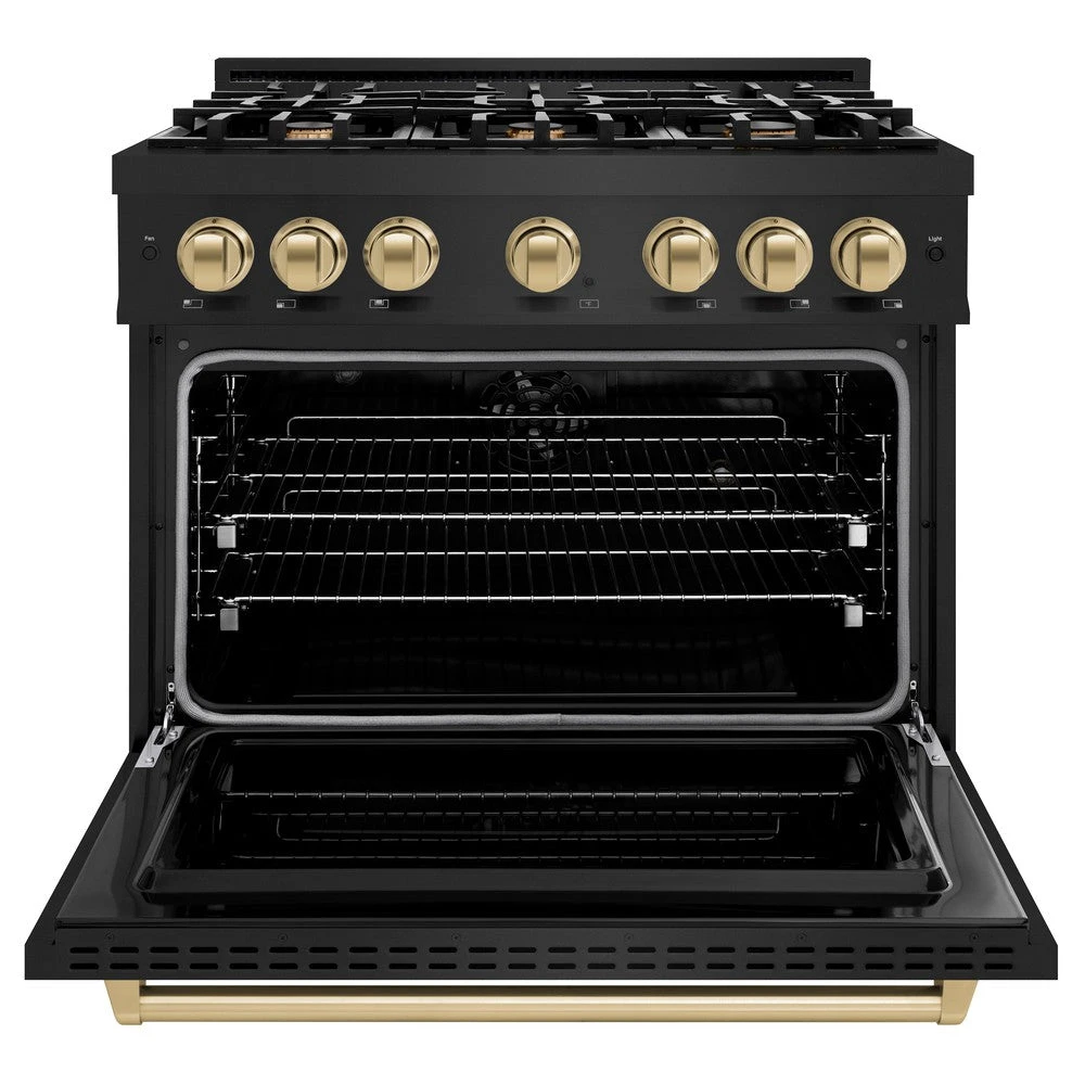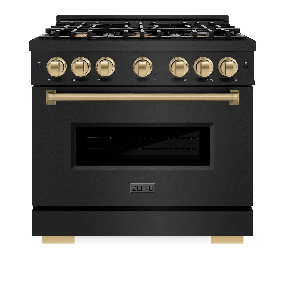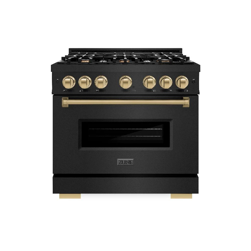 ZLINE Autograph Edition 36 In. 5.2 Cu. Ft. Classic Dual Fuel Range With 6 Burner Gas Cooktop And Electric Convection Oven In Black Stainless Steel With Champagne Bronze Accents (CDRBZ-36-CB)(Zline Autograph Edition 36 Classic Dual Fuel Range Black Stainless Steel Champagne Bronze Cdrbz 36 Cb)