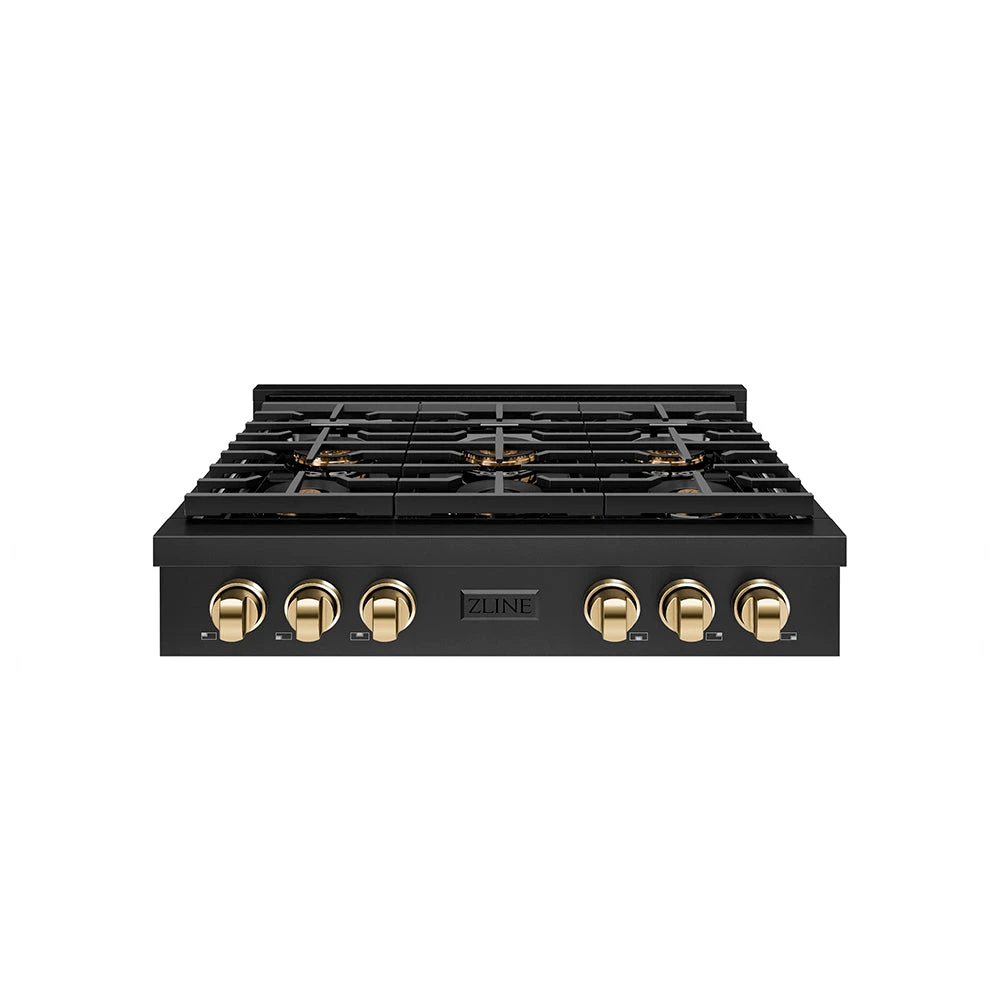 ZLINE Autograph Edition 36 In. Paramount Gas Rangetop With 6 Burner DuoPro™ Cooktop In Black Stainless Steel And Polished Gold Accents (PSRTBZ-36-G)(Zline Autograph Edition 36 Paramount Gas Rangetop Duopro Black Stainless Steel Polished Gold Psrtbz 36 G)