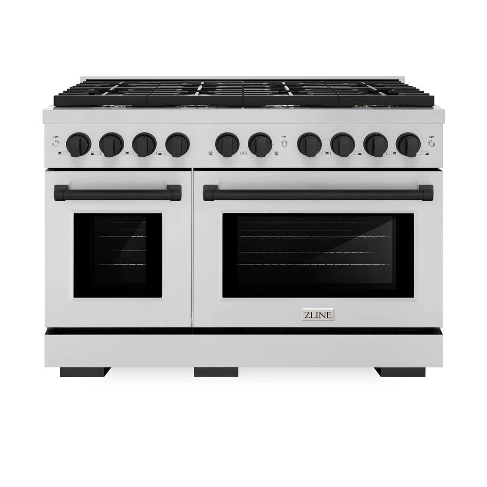 ZLINE Autograph Edition 48 In. 6.7 Cu. Ft. Paramount Double Oven Gas Range With 8 Burner Cooktop In Stainless Steel And Matte Black Accents (SGRZ-48-MB)(Zline Autograph Edition 48 Paramount Gas Range Stainless Steel Matte Black Sgrz 48 Mb)