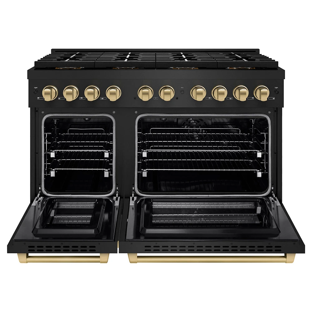 ZLINE Autograph Edition 48 In. 6.7 Cu. Ft. Paramount Dual Fuel Range With 8 Burner DuoPro™ Cooktop And Dual Ovens In Black Stainless Steel And Champagne Bronze Accents (PSDRBZ-48-CB)(Zline Autograph Edition 48 Paramount Dual Fuel Range Duopro Black Stainless Steel Champagne Bronze Psdrbz 48 Cb)