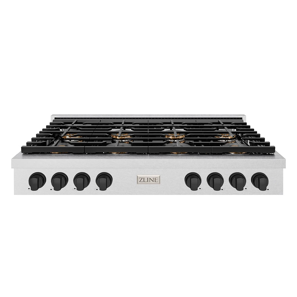 ZLINE Autograph Edition 48 In. Paramount Gas Rangetop With 8 Burner DuoPro™ Cooktop In Satin Stainless Steel And Matte Black Accents (PSRTSZ-48-MB)(Zline Autograph Edition 48 Paramount Gas Rangetop Duopro Satin Stainless Steel Matte Black Psrtsz 48 Mb)
