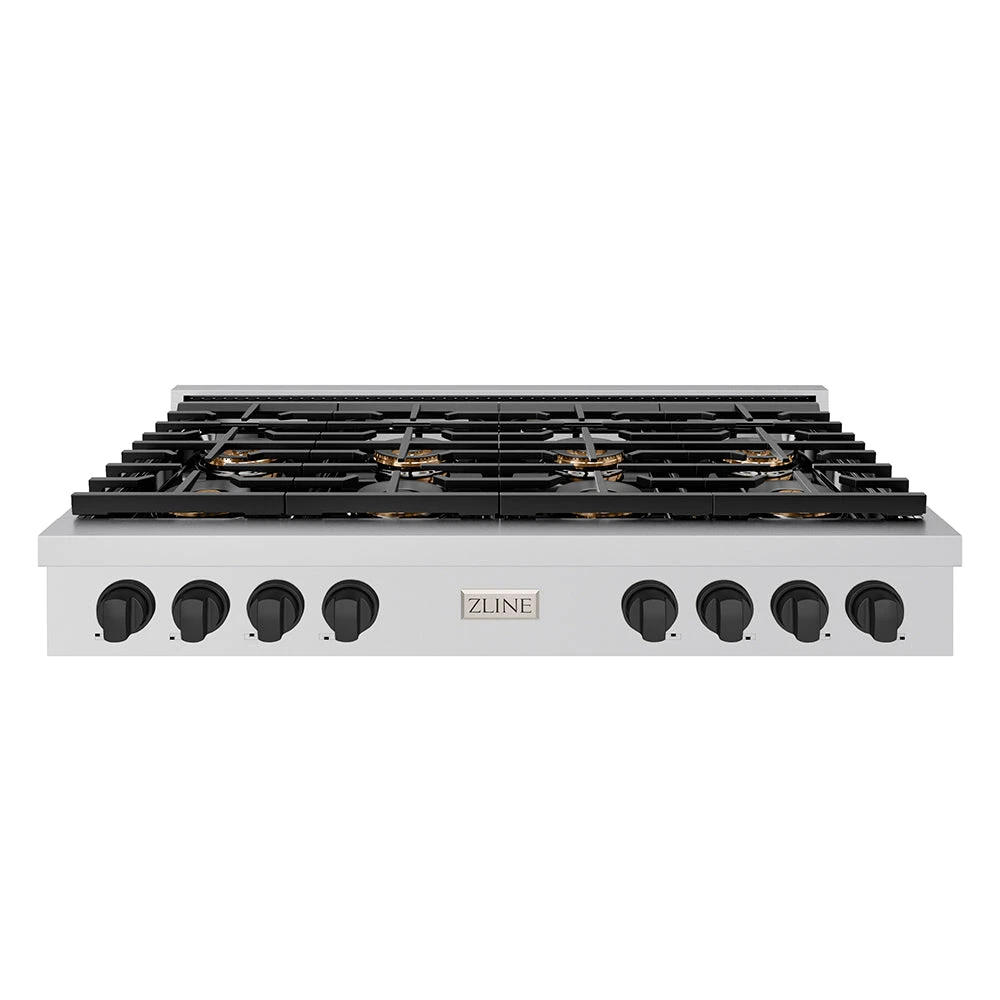 ZLINE Autograph Edition 48 In. Paramount Gas Rangetop With 8 Burner DuoPro™ Cooktop In Stainless Steel And Matte Black Accents (PSRTZ-48-MB)(Zline Autograph Edition 48 Paramount Gas Rangetop Duopro Stainless Steel Matte Black Psrtz 48 Mb)